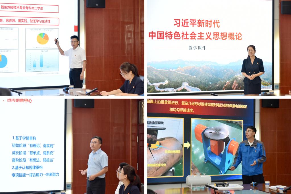 会上,马克思主义学院党总支书记、院长梁杰,材料工程学院副院长武同分别介绍了思政课建设和智能焊接技术专业建设情况;马克思主义学院教师王晓毅、彭南,材料工程学院教师武同、王亚强依次进行了说课和教学展示;结对共建的郑州电子商务职业学院马克思主义学院教师代表和我校六位教师和学生代表分别进行了交流发言。